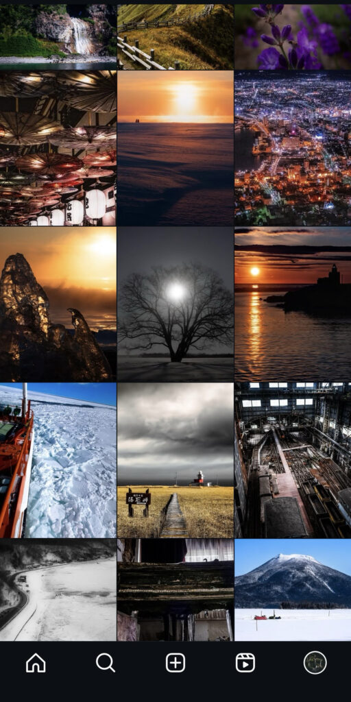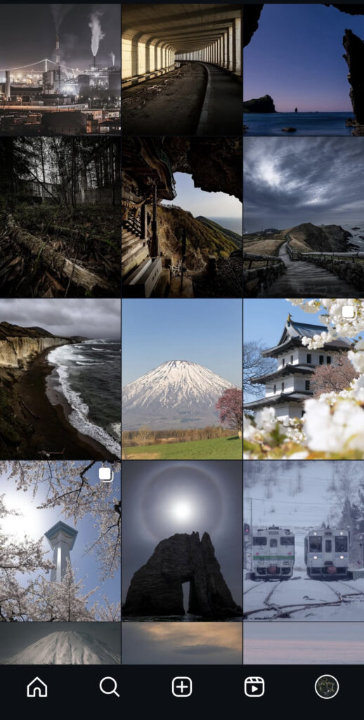 そんな暗い思いは作品にも乗るらしい。3年間のうちに投稿していた作品はみな、それぞれ色味は違うのにどこか黒く暗い。当時の自分は認知しておらず、私の作品を見てくれた人々が口々に評した。別にわざとこうしていたわけでもないし、定まったレタッチの手順もなかったはずなのに、レタッチをやめていいかなと思う頃にはこんな作風になっていた。重々しい何かが全ての作品に漂って、ある意味雰囲気を統一している。北海道の風景はいつも明るく美しかった。それなのに私はそれを重々しく賞美して暗い作品を生み出していたのだ。葛藤に苛まれていたあの頃の奇妙な幸福の断片が、黒の作品群に滲んでいる。
